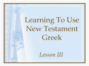 <Notice: Removed> Learning To Use New Testament Greek PowerPoint PPT Presentation