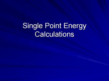 Single Point Energy Calculations PowerPoint PPT Presentation