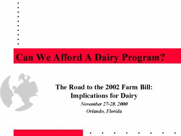 1Can We Afford A Dairy Program?