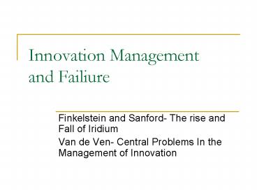 Innovation Management and Failiure PowerPoint PPT Presentation