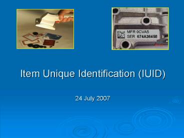 <Notice: Removed> Item Unique Identification IUID PowerPoint PPT Presentation