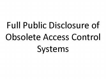 Title: Full Public Disclosure of Obsolete Access Control Systems