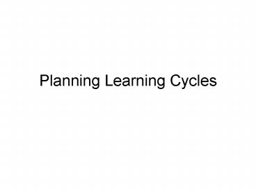 Title: Planning Learning Cycles