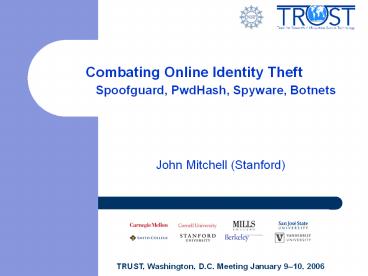 Title: Combating Online Identity Theft Spoofguard, PwdHash, Spyware, Botnets