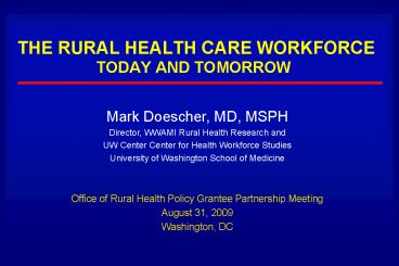 Title: THE RURAL HEALTH CARE WORKFORCE TODAY AND TOMORROW