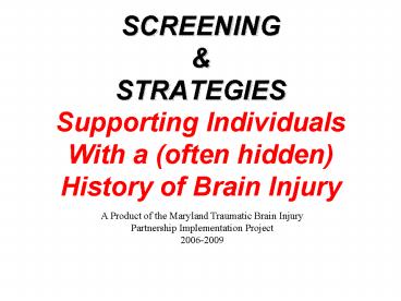 A Product of the Maryland Traumatic Brain Injury
