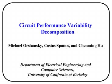 Title: Circuit Performance Variability Decomposition
