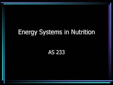 caloric density of the diet - 3. Predicts Animal Performance using a wide range