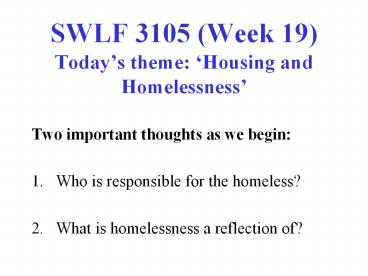 SWLF 3105 (Week 19) Today PowerPoint PPT Presentation