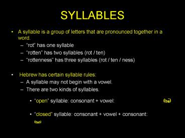SYLLABLES PowerPoint PPT Presentation