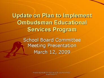 Title: Update on Plan to Implement Ombudsman Educational Services Program