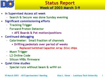 Status Report Week of 2003 March 39 PowerPoint PPT Presentation