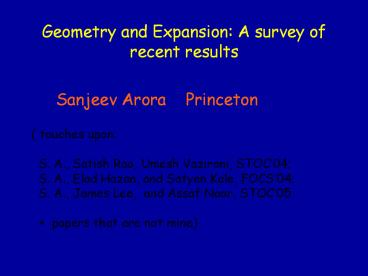 Satyen Kale, FOCS04 S. A., James Lee, and