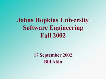 Title: Johns Hopkins University Software Engineering Fall 2002