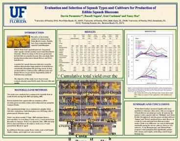 1Evaluation and Selection of Squash Types and
