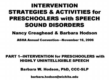 PRESCHOOLERS with SPEECH SOUND DISORDERSNancy