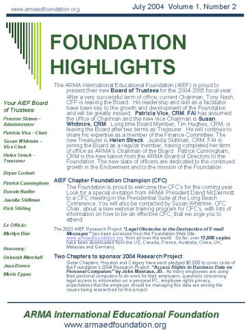 - The ARMA International Educational Foundation