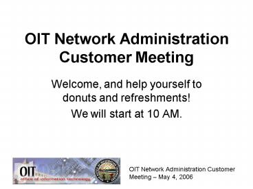 (15 minutes) Denise Freshley - OIT Ethernet Services Discussion (10 minutes)