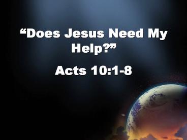 1Does Jesus Need My Help? Acts 101-8