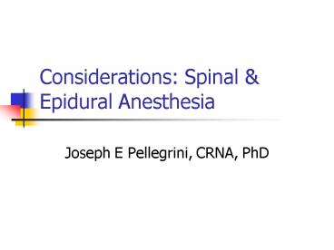 1Considerations Spinal Epidural Anesthesia