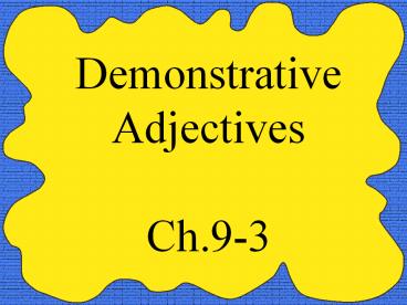 Demonstrative Adjectives Ch.9-3