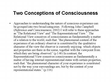 Two Conceptions of Consciousness PowerPoint PPT Presentation