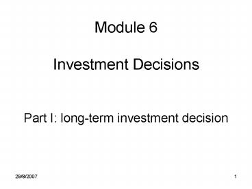 Title: Module 6 Investment Decisions Part I: longterm investment decision