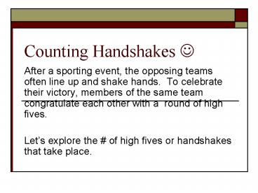 Counting Handshakes PowerPoint PPT Presentation