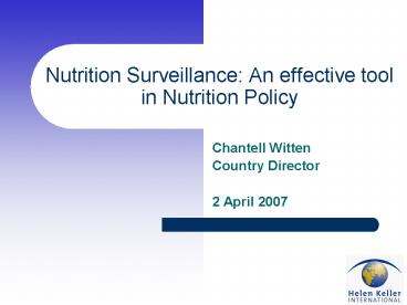Title: Nutrition Surveillance: An effective tool in Nutrition Policy