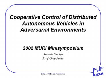 Cooperative Control of Distributed Autonomous Vehicles in Adversarial Environments PowerPoint PPT Presentation