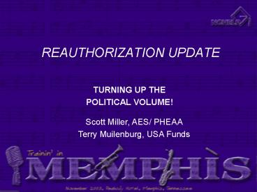Title: REAUTHORIZATION UPDATE