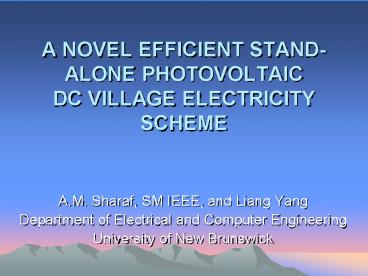 Title: A NOVEL EFFICIENT STANDALONE PHOTOVOLTAIC DC VILLAGE ELECTRICITY SCHEME