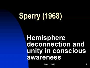 Hemisphere deconnection and unity in conscious awareness PowerPoint PPT Presentation