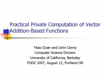 <Notice: Removed> Practical Private Computation of Vector AdditionBased Functions PowerPoint PPT Presentation