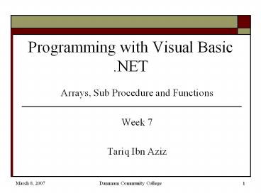 <Notice: Removed> Programming with Visual Basic .NET PowerPoint PPT Presentation