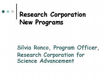 Title: Research Corporation New Programs