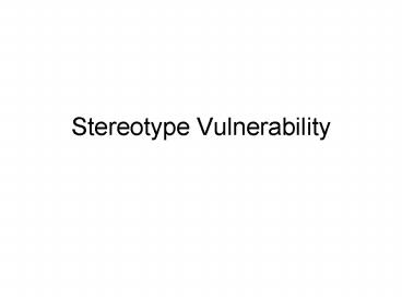 Stereotype Vulnerability PowerPoint PPT Presentation
