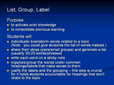 List, Group, Label PowerPoint PPT Presentation
