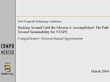 Path Toward Sustainability for NTAPS CompuMentor