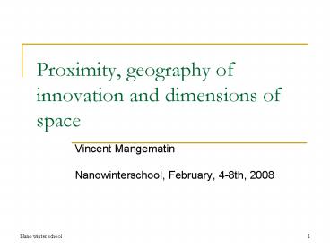 geographic proximity and informal relationship - Knowledge at the frontier of the knowledge cannot