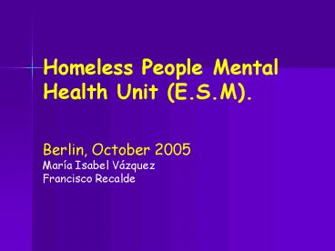 Title: Homeless People Mental Health Unit E'S'M'