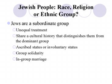 Title: Jewish People: Race, Religion or Ethnic Group