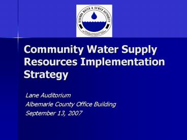 <Notice: Removed> Community Water Supply Resources Implementation Strategy PowerPoint PPT Presentation