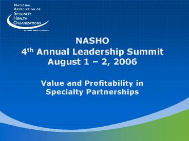 Partnerships NASHO Leadership SummitAugust 2,