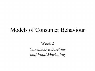Title: Models of Consumer Behaviour