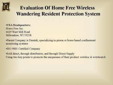 Title: Evaluation Of Home Free Wireless Wandering Resident Protection System