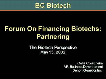 Forum On Financing Biotechs: Partnering PowerPoint PPT Presentation