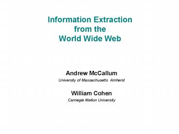 <Notice: Removed> Information Extraction from the World Wide Web PowerPoint PPT Presentation