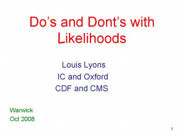 1Dos and Donts with Likelihoods