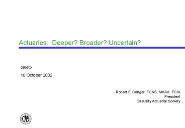 Actuaries: Deeper Broader Uncertain PowerPoint PPT Presentation
